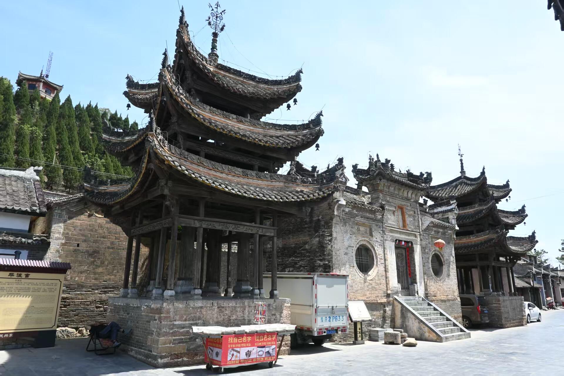 古镇现存的七大会馆,是一部鲜活的明清商业史。山陕会馆的照壁上,“万商云集”的砖雕虽已风化,仍可辨驮货的骆驼与牵马的胡商;禹王宫的戏楼藻井,用2000余片木片拼成“二龙戏珠”图案,每片木片都刻有商号徽记,当年湖广商人集资修建时,曾立下“每捐百两,刻片留名”的规矩;最特别的平浪宫,专为祭祀水神杨泗将军而建,门楣上的“镇水铁锚”重达千斤,船头形的屋脊两端立着“吞水兽”,船帮商人出航前必来焚香,祈求“风平浪静达三江”。