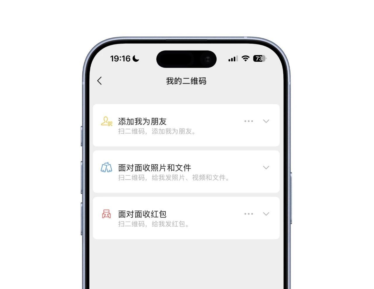 第二个是「面对面收照片和文件」。该功能有点像「文件传输助手」,通过扫码即可与附近好友传输照片、视频和文件,不需要流量,也不需要先加好友;