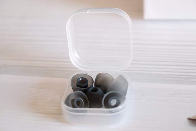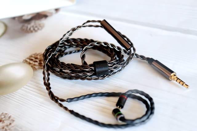 耳机平铺在盒子中间,形状像是两只蝌蚪。耳机整体采用枪色金属质感,半透明设计能看到内部的声学结构,线流线腔体,专为国人设计,自然贴合耳道轮廓,压力分布均匀,佩戴舒适。耳机侧面使用的是0.78mm 2-pin镀金接口,可支持更换线材,即使原本的线长时间磨损也可单独配备1根线体继续使用,再也不担心买个耳机线坏了,又要买新耳机的情况。随包装还赠送三套不同尺寸的亲肤抗菌的耳帽,根据个人耳朵结构及使用习惯进行选配。耳机线材用的是182芯精密同轴线材,导体是OFC无氧铜外层镀银设计,可有效降低传输过程中的阻抗和失真,外层还混编了250d尼龙防爆丝,来加强线体的结实度,整体手感柔软又耐用。随产品还附赠了一根USB口转3.5mm转换头。