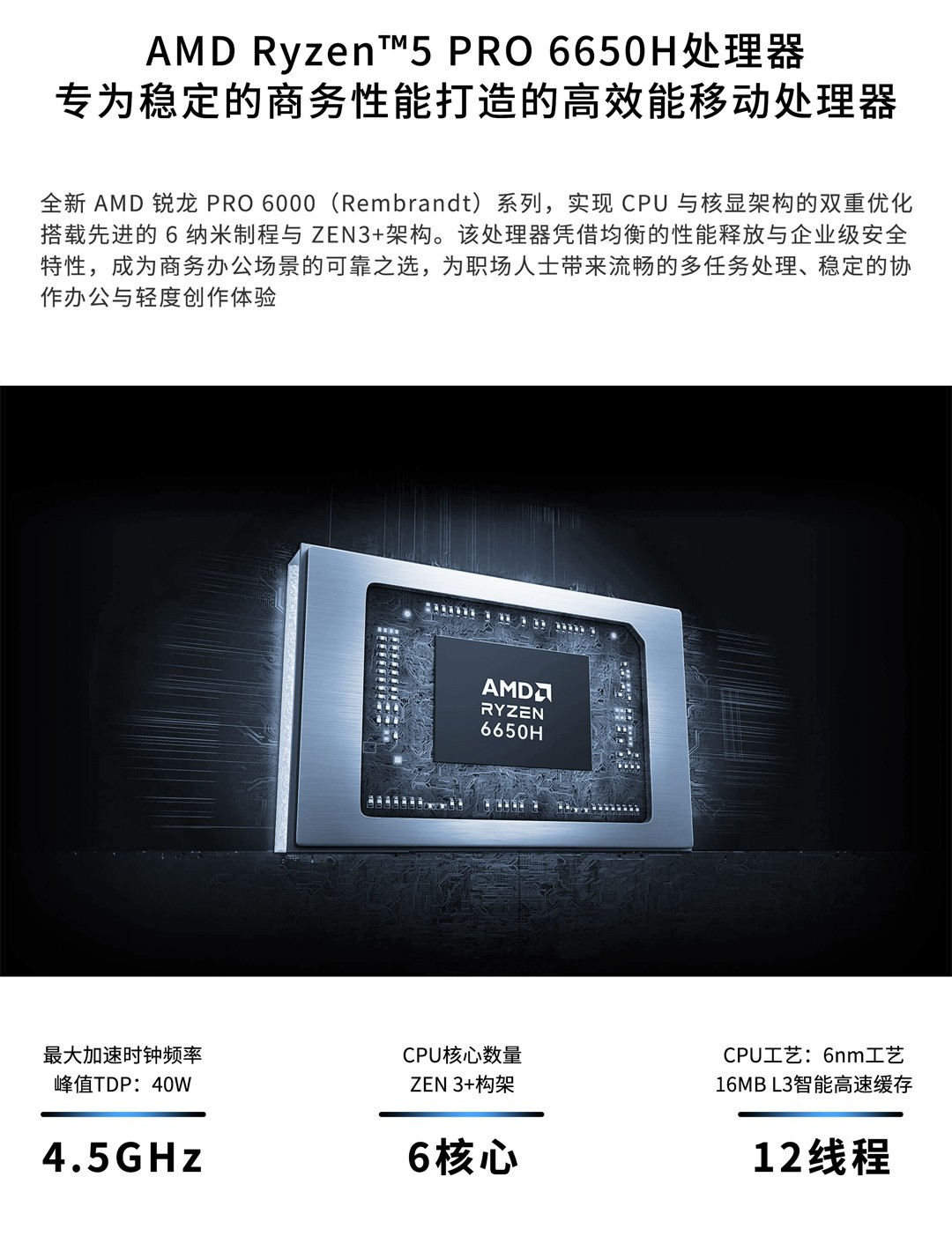 搭载AMD Ryzen™5 PRO 6650H移动处理器,基于6nm Zen3+架构,拥有6核心12线程,最高加速频率达4.5GHz,峰值TDP 40W。通过AIDA64 2小时满载测试,性能释放稳定无降频,无论是多任务办公、代码编译还是轻度内容创作,都能从容应对。鲁大师综合跑分942,6647,CINEBENCH R20多核得分3867,性能对标主流游戏本,打破“迷你主机性能孱弱”的固有认知。