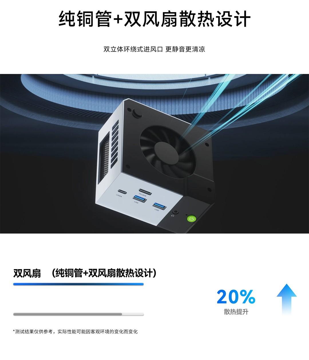 荣获德国红点设计大奖,首创C工艺美学,金属机身质感拉满,尺寸迷你可轻松放入背包,真正实现“口袋里的主机”。采用纯铜管+双风扇散热方案,静音与性能兼顾,长时间高负载运行也能“冰凉不燥”,静音模式下仅28W功耗,深夜办公无噪音干扰。