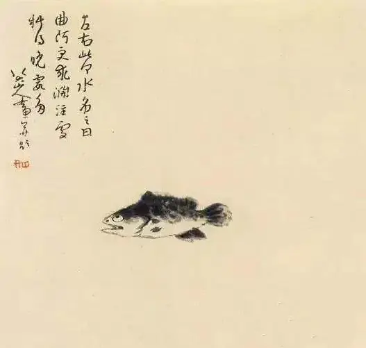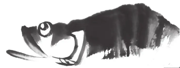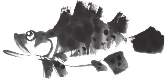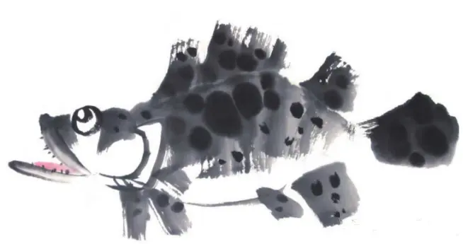 5、用重墨以散点法表现鱼身斑纹,讲究疏密节奏与形态变化,避免程式化排列。