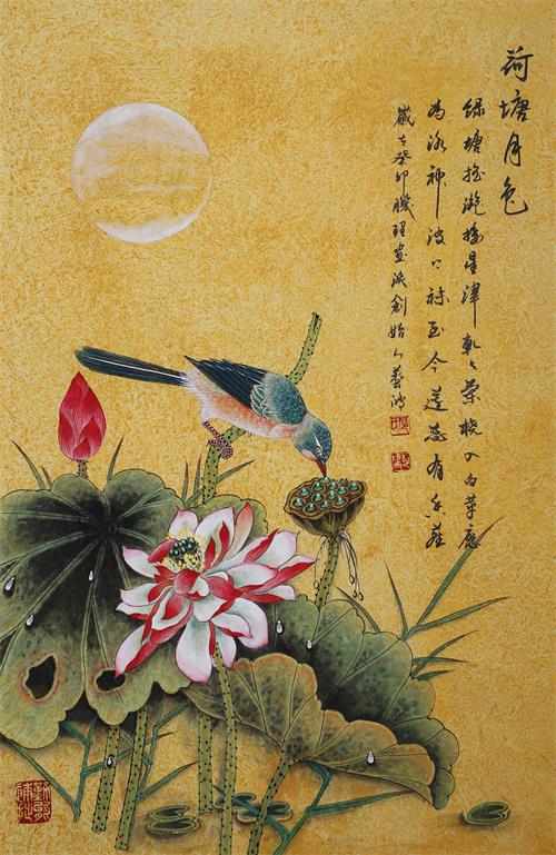 在笔墨传承上,又经故宫书画鉴定泰斗单国强亲授,将明清宫廷绘画技法融入创作,使肌理创新始终扎根传统文脉,这种“以古入今,中西共鉴”的探索,让他的作品既有《梅兰竹菊》四条屏的儒家文化底蕴,又有《祥龙献瑞》中东方漆艺与西方培拉技法交融的国际表达,被誉为当今最有思想的书画家。