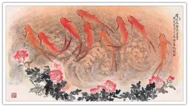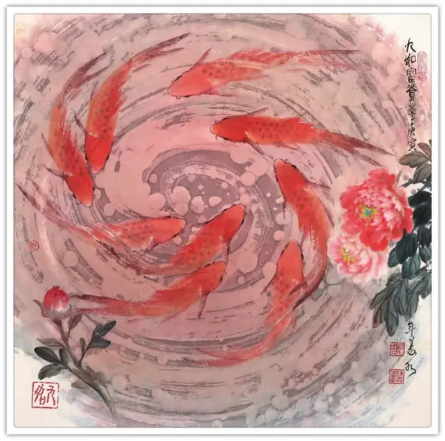 陈义水的鱼画充满了诗意盎然的意境。他常常以鱼为主题,借景抒情,表达自己对生活的感悟和对自然的热爱。在他的作品中,鱼儿仿佛是大自然的精灵,在清澈的水中自由自在地遨游,传递着一种和谐、美好的情感。观者在欣赏画作时,仿佛置身于一个诗意的世界,感受到一种心灵的宁静与愉悦。