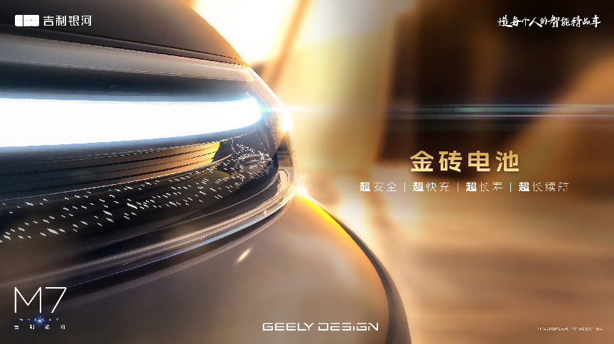 据悉,吉利银河 M7 将搭载吉利三大新能源核心科技。其中,银河搭载、自研自产的金砖电池,凭借超安全、超快充、超长寿、超长续航的行业领先性能,为用户带来全方位的出行保障;