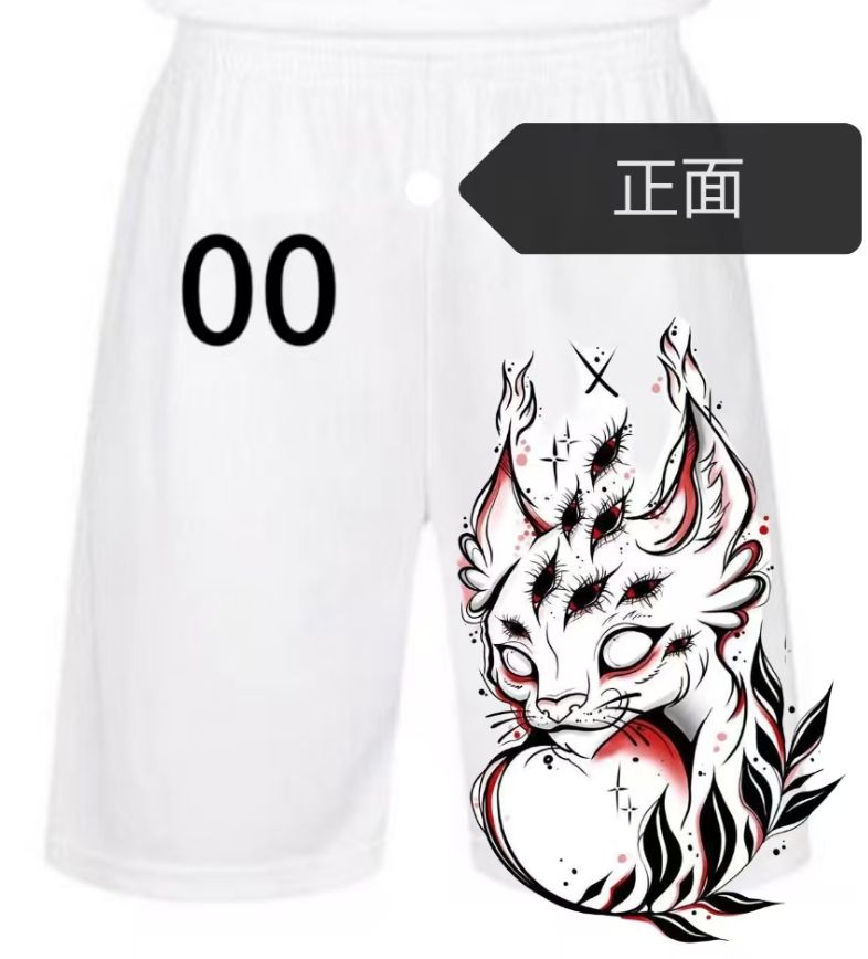 再看球裤,直接是多眼猫的暗黑插画风格,红黑撞色搭配,线条又犀利又张扬,还有那种神秘的灵猫意象,和传统龙凤完全是两个极端。最让我纠结的是底色,她选了黑粉水墨烟雾的抽象背景,黑粉撞色自带甜酷反差,水墨晕染的氛围感又很特别,一边是少女的温柔粉,一边是篮球运动的酷飒黑,混搭在一起居然意外的和谐。