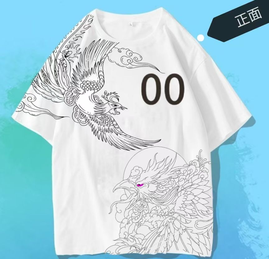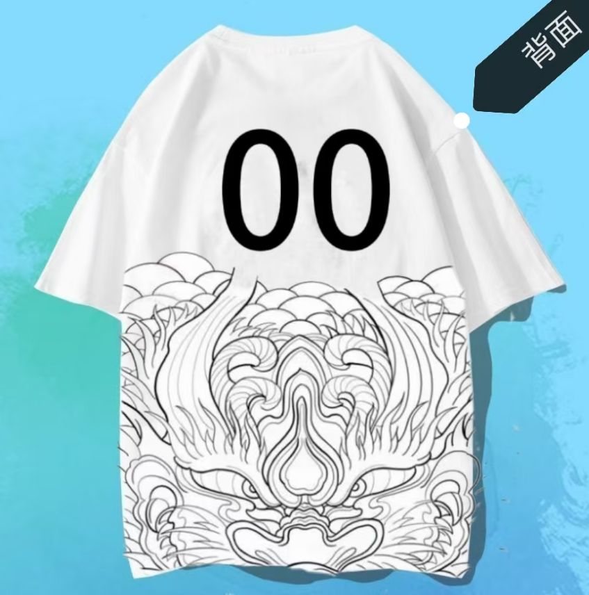 她给的素材真的太有想法了,完全不是我印象中传统篮球服的样子。上衣是龙凤的线稿图案,龙凤纹本身是很传统的国风元素,可她用的是黑白单线勾勒,没有一点多余的色彩,把厚重的传统感弱化了,透着股简约又有质感的新中式味儿;背面的龙纹和正面的凤凰呼应,又带着点 “刚柔并济” 的巧思。