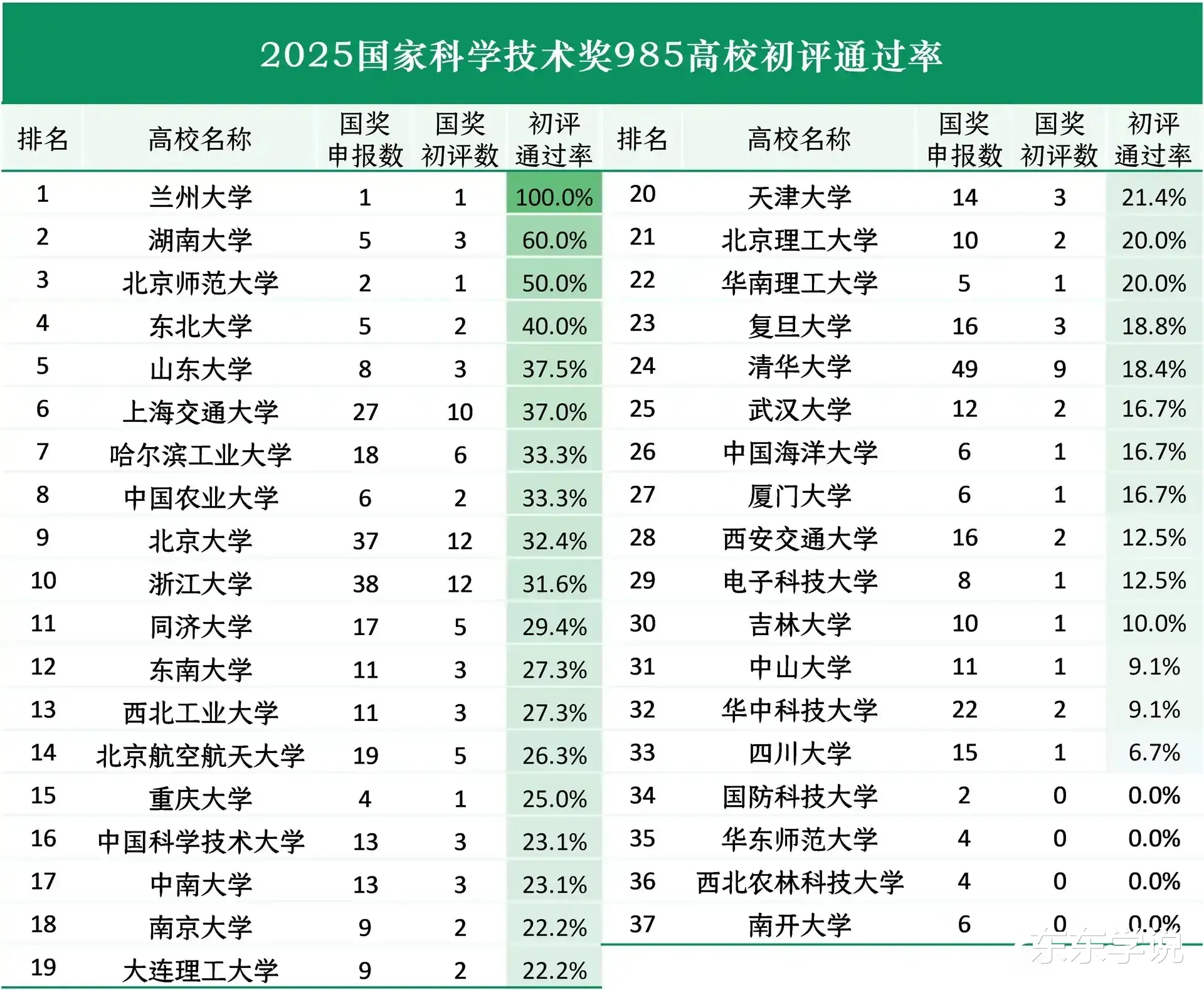 按照各单位项目的受理数与初评数;南开大学、华东师范大学、国防科大与西北农林科技大学通过率为0,意味着这四校在今年的国家科技奖上已经两手空空了!