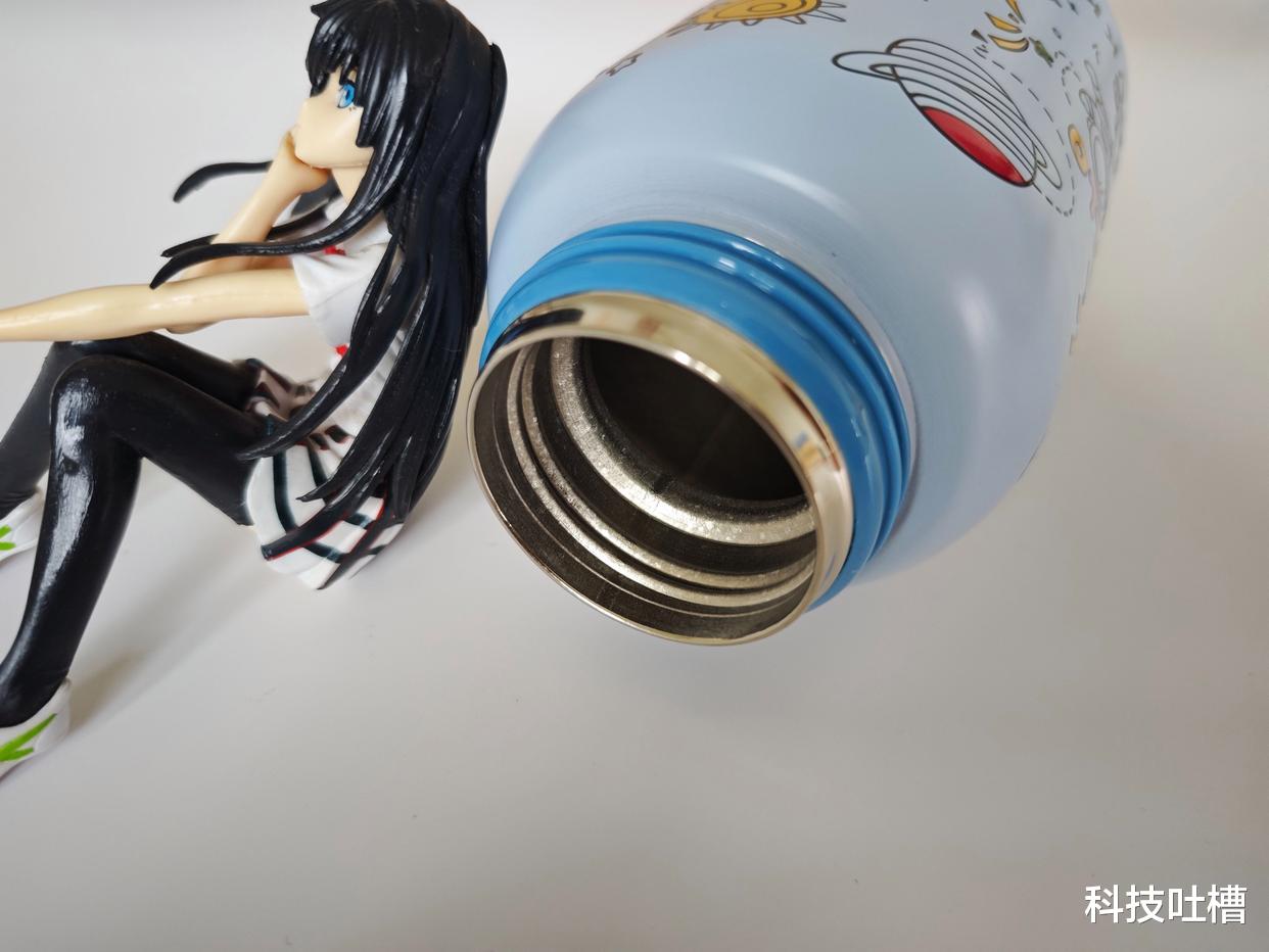 包装方面的简单却掩盖不了这款保温杯的优秀,看到宫菱儿童纯钛保温杯,我和女儿就被它可爱的外表深深吸引。这款保温杯有天空蓝和樱花粉两种配色,女儿喜欢蓝色,所以我便买了这款天空蓝。杯身以萌趣的卡通风格为主,粉色杯身上绘着可爱的小猫和宇航员等等太空元素,瞬间就戳中了女儿的少女心,她拿到杯子后爱不释手,迫不及待地就要用它喝水。