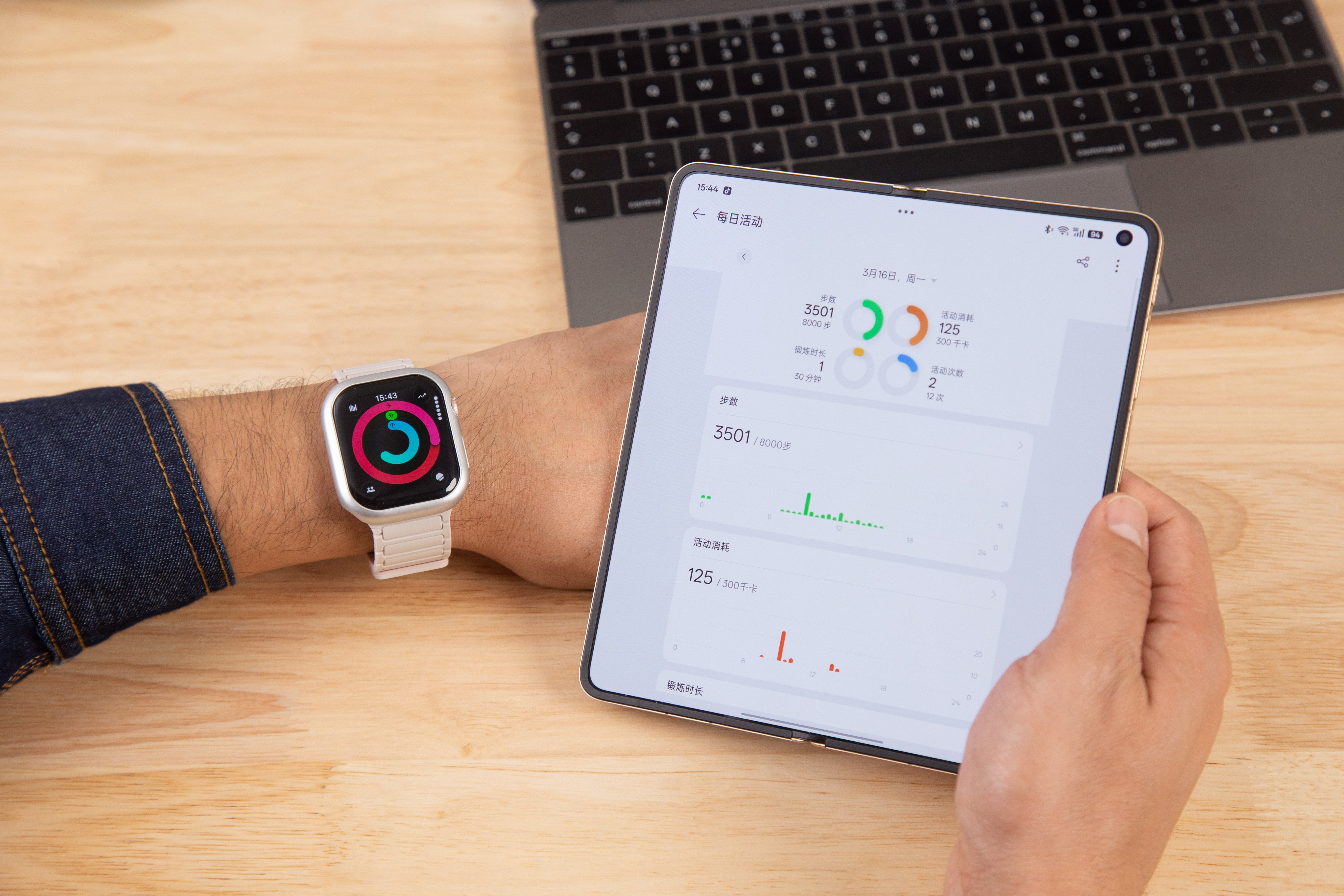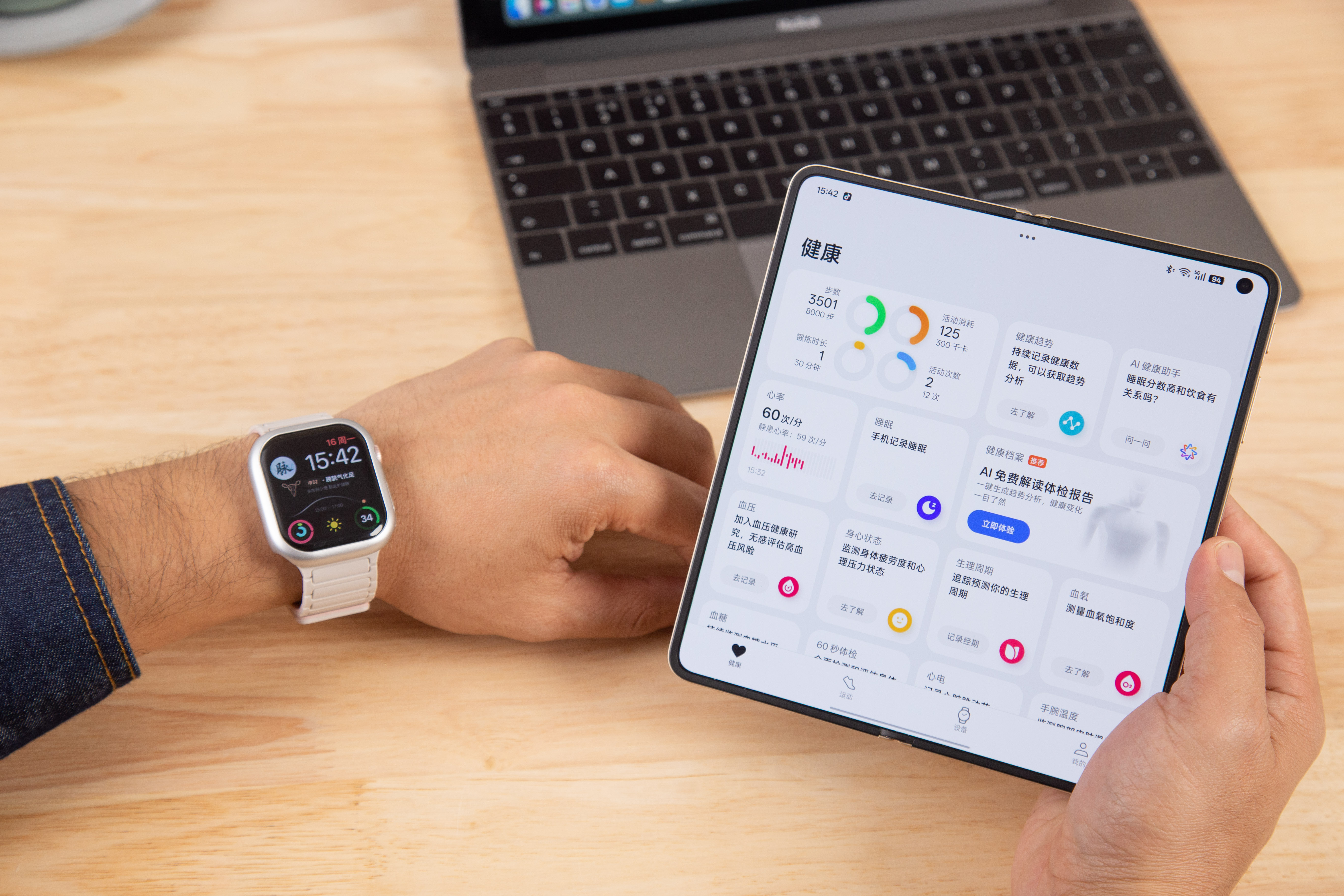 而在穿戴式设备上,OPPO Find N6 也支持Apple Watch 互联。 支持健康与运动数据双向同步,流体云服务实时流转显示,还可以通过手表遥控手机拍照、查找手机。