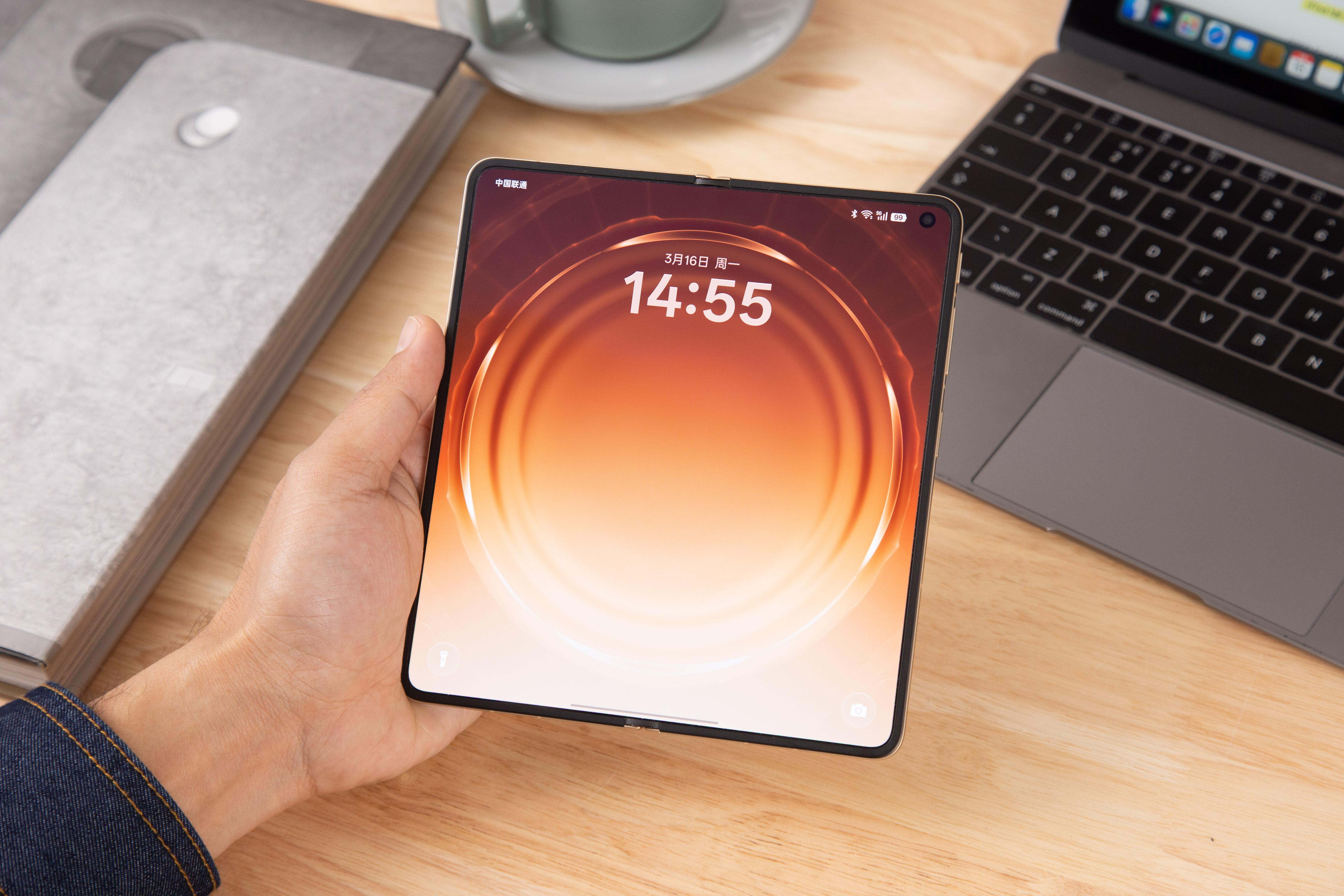 8.93mm 这个厚度,和市面上主流的「超大杯」直板旗舰基本处于同一水平。225g 的重量,比绝大多数同级别直板机还要轻一些。单手握持的时候,那种「这是一台折叠屏」的心理包袱, 已然消失了——它就是一台普通的旗舰手机,只不过展开之后会多出一块大屏。