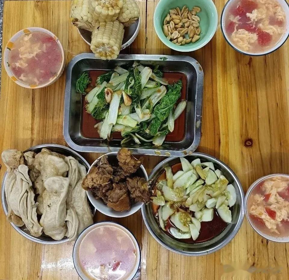 ✓ 蔬菜多吃深绿色:每餐都有大量绿叶菜,比如小白菜、油麦菜,热量低、富含维生素,有助稳定餐后血糖。