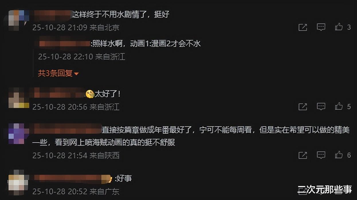 而现在集数变少了,这代表动画组不光压力小了,而且更有内容可以做了,水剧情的情况将会大大减少,动画的质量也会大大提高,现在很多长篇漫画也都采用的季播的方式。当然,具体《海贼王》动画的质量能有多大的提升,我们还是要等明年新政策实行后才能见分晓。