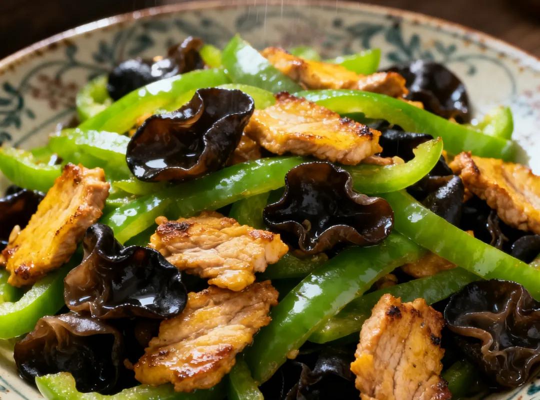 肉片软嫩不柴,木耳脆爽弹牙,青椒的微辣,中和了肉的油腻,每一口都鲜香十足。