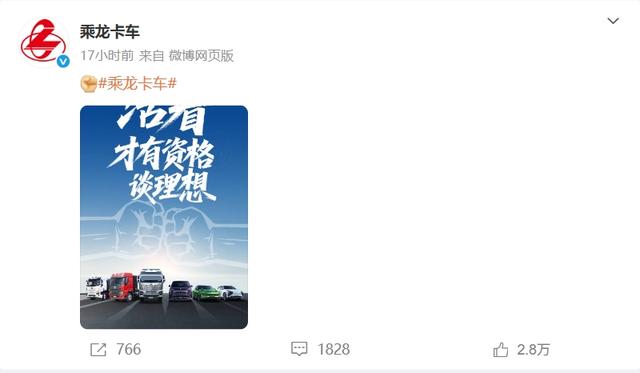 8月2日,乘龙卡车官方发布海报“活着才有资格谈理想”。