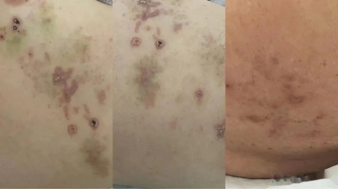 崔吉正:我们曾接诊一位阿姨,68岁,因“左侧前胸、腋窝及胸背部疼痛感10天余”入院,患者自诉10天前劳累后出现左侧前胸、腋窝及胸背部疼痛不适,3天后疼痛部位皮肤出现隆起性皮疹,皮疹沿疼痛部位呈条带状连续性分布,皮疹部位逐渐形成簇积性水泡,水泡破溃后皮肤逐渐结痂,疼痛持续性加重,疼痛呈持续性烧灼样痛、针刺样痛、跳痛,伴疼痛部位皮肤、紧束带感等不适感,伴爆发性疼痛,每日发作大约20次,每次持续大约2-3分钟,疼痛以局部触碰皮肤、日常活动、阴雨天、劳累后加重,制动休息后缓解。伴有胸背部酸胀疼痛不适,劳累后加重,制动休息后缓解。患者因疼痛严重影响睡眠和日常生活,就诊于某卫生院,予克林霉素抗感染、阿昔洛韦抗病毒等治疗,治疗效果欠佳。