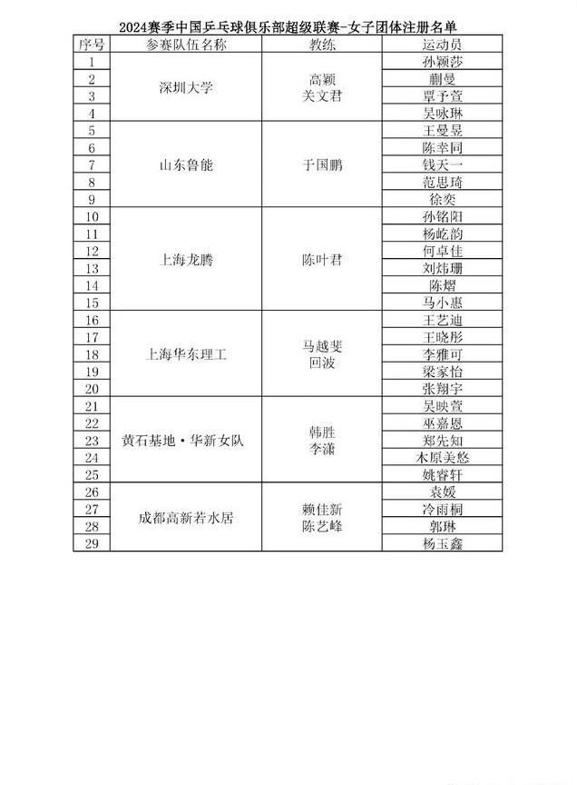 各位老铁们,20242024赛季中国乒乓球俱乐部超级联赛马上就要开打啦,这次的阵容就跟过年一样,大家可不要错过了哦!