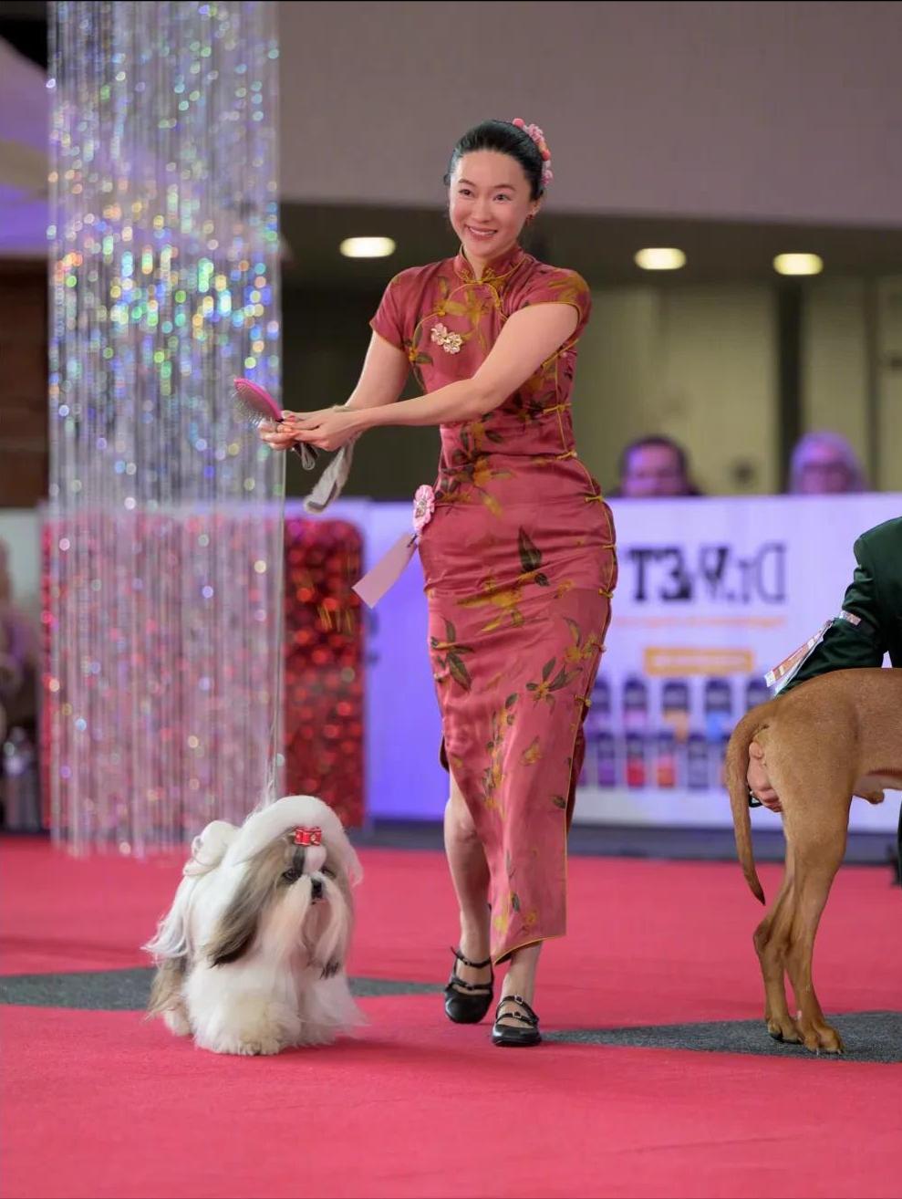 此次参赛的西施犬“霍香香”凭借优雅体态和稳定表现,再次证明中国原生犬种的卓越品质。赛场上的它佩戴着特制红色蝴蝶结,与霍思燕的旗袍造型相映成趣,构成最具辨识度的“中国红”组合。业内人士指出,这标志着中国犬文化正获得国际权威认可。