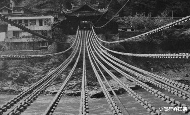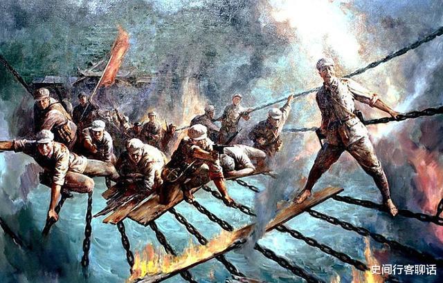 泸定桥上的木板全都被敌人给搬走了,只剩下孤零零的十几根铁链挂在上面。往下一看,大渡河波涛汹涌,咆哮不止;往上一瞧,子弹嗖嗖地在头顶飞过,乱成一团。