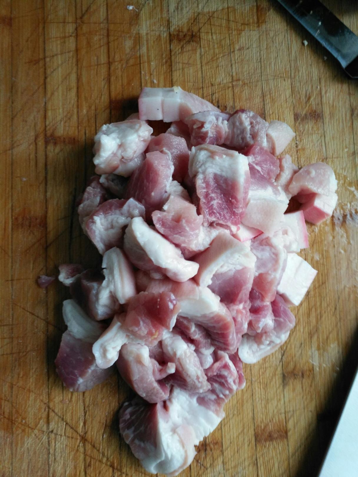 处理五花肉:将五花肉洗净,切成大小均匀的方块,冷水下锅,加入 1 勺料酒、几片姜片,水开后煮 3 - 5 分钟,撇去浮沫,捞出沥干水分。