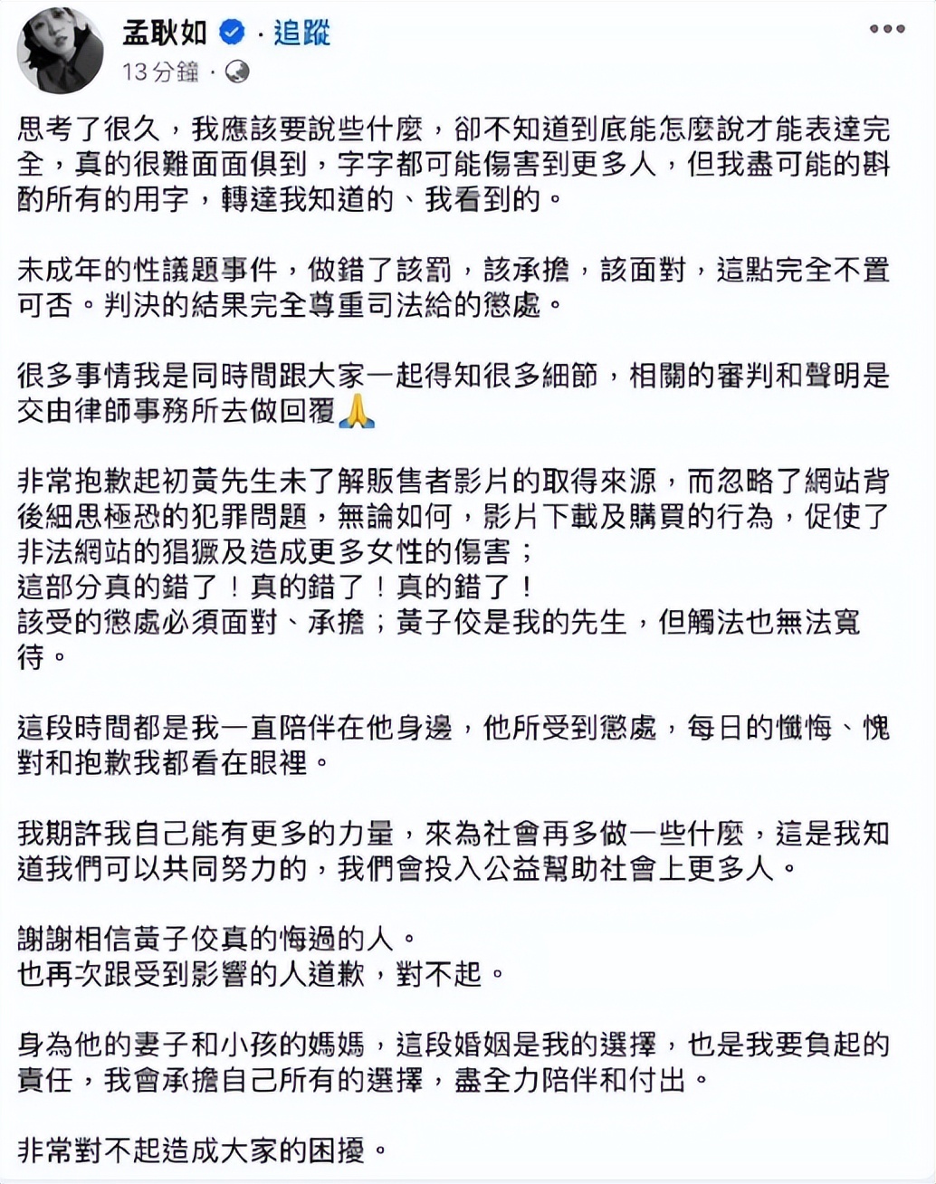 孟耿如这90后姑娘,原本前程似锦,2013年跟黄子佼谈上恋爱,还被誉为老少恋。2020年步入婚姻殿堂,去年喜得贵子,本想着要好好享受生活,没想到老公来这么一出。