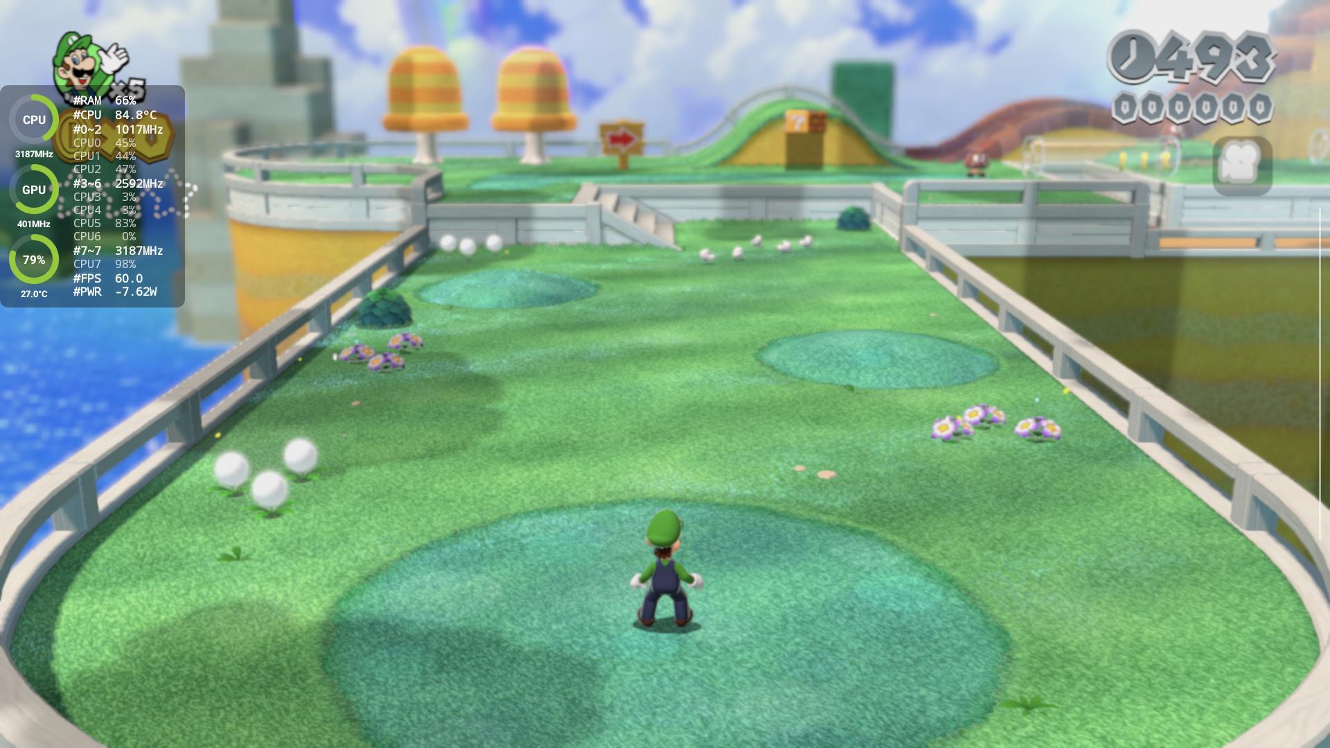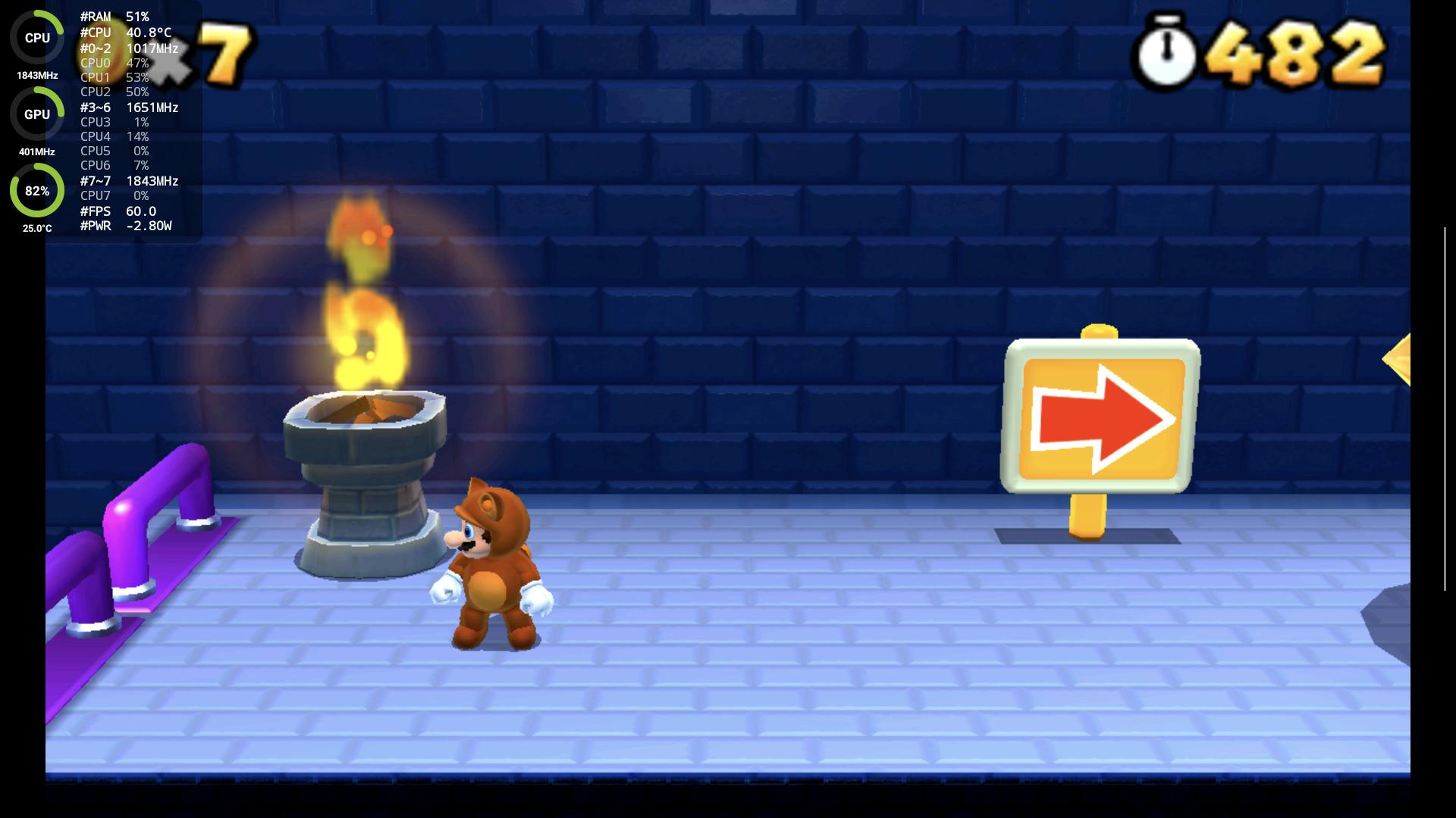 ▼CEMU 马里奥 3D 世界 60帧,功耗在7~8W 左右波动