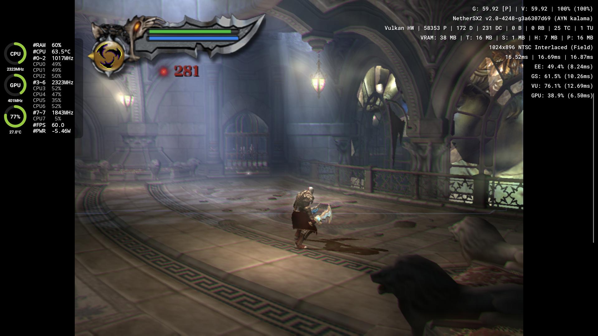 ▼NetherSX2 战神2 60帧,功耗在4~6W 左右波动