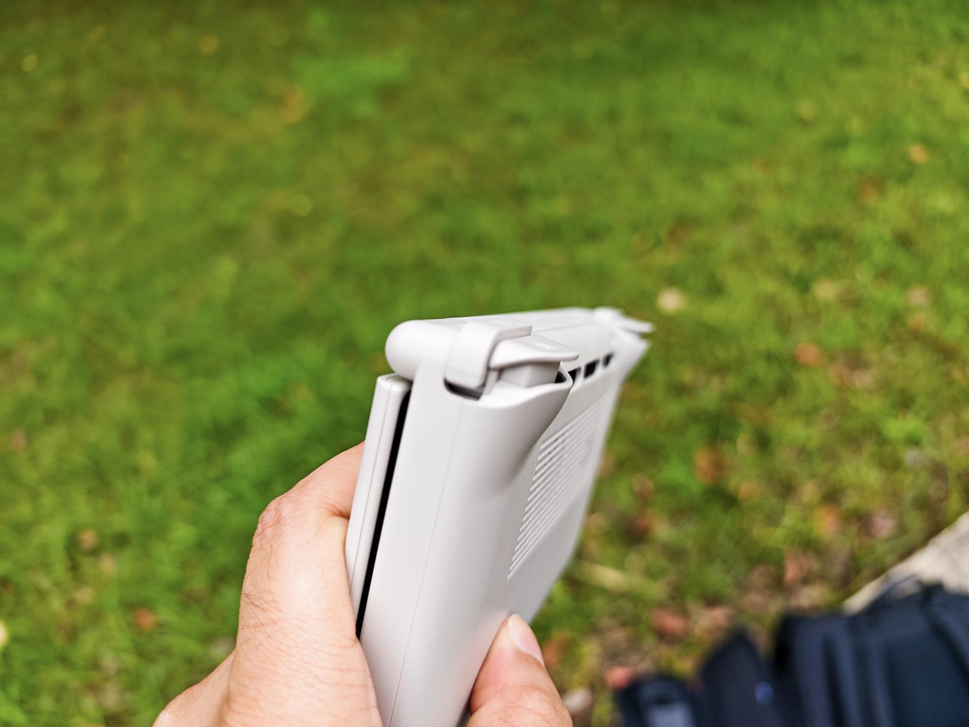 机器整体翻盖手感尚可,不过合盖的时候最后一段C面与上方只要中央凸台是有效支撑,这样的设计应该是为了给摇杆留下更多的空间。不过如果放在包内,就不太建议让太重的重物压在机器上,避免压力集中在某一侧导致机器变形甚至是损坏。