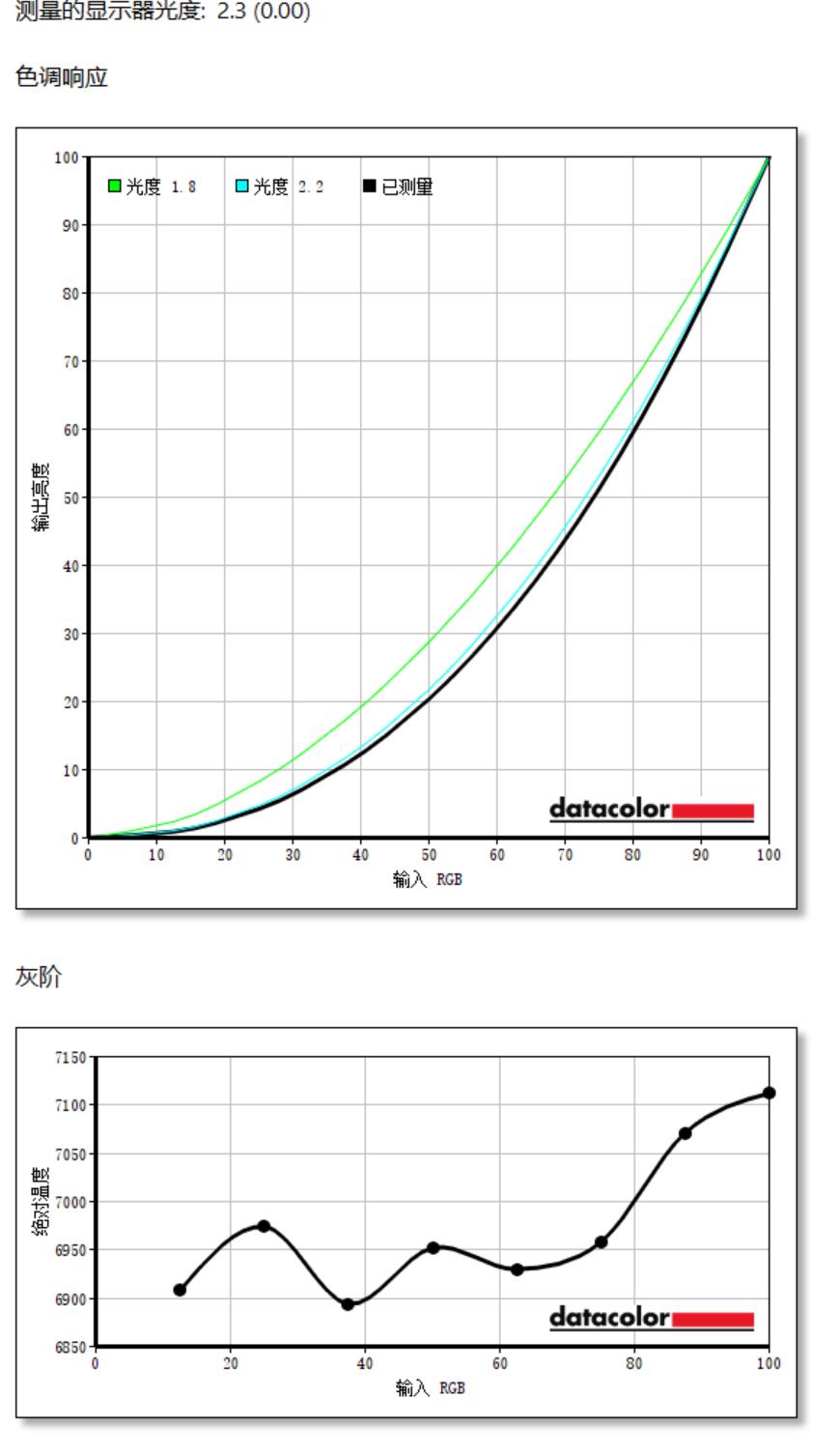 上下两块屏幕的色温比较接近,不过上屏实测光度曲线2.2,下屏实测光度曲线2.3,存在轻微的偏差。不过光度曲线都在2.2±0.2的规格范围内,考虑到毕竟是小厂产品,这样的双屏屏幕差异其实已经控制的算是不错了。