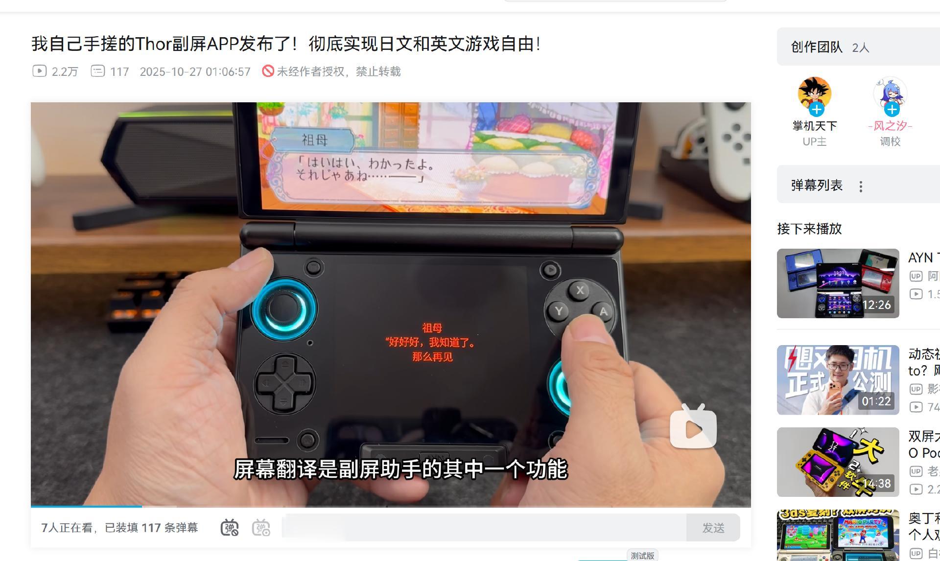 小破站还有大佬手搓了翻译 APP,可以利用下屏显示翻译字幕,对于非双屏平台第二块屏幕也有很多的应用待发掘。