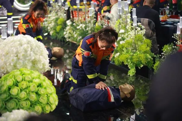 随后,由欣妍、刘琳萍、郑银屏等队员带来的【救援急救操】表演,将日常救援中的急救技能以规范、整齐的操演形式呈现,动作干练,节奏分明,彰显了队伍过硬的专业素养和训练有素的队伍形象。