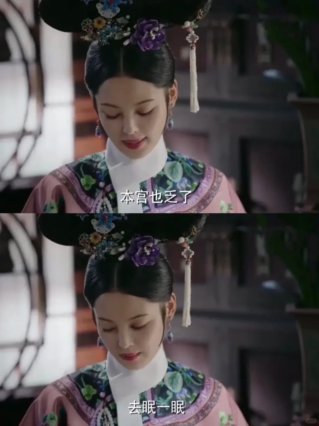 比这更离谱的是“去眠一眠”的“幼儿园文风”。皇后富察琅嬅累了想休息,不说“本宫乏了”“安置吧”,偏偏蹦出一句“去眠一眠”,瞬间把清宫剧的氛围感拉到“过家家”现场。有网友翻出原著对比,发现小说里本是“安置便是”,不知为何影视化时改成了这版,连历史博主都忍不住调侃:“清朝后妃说话这么萌的吗?怕是把‘睡觉觉’‘吃饭饭’藏在台词本里没敢用。”
