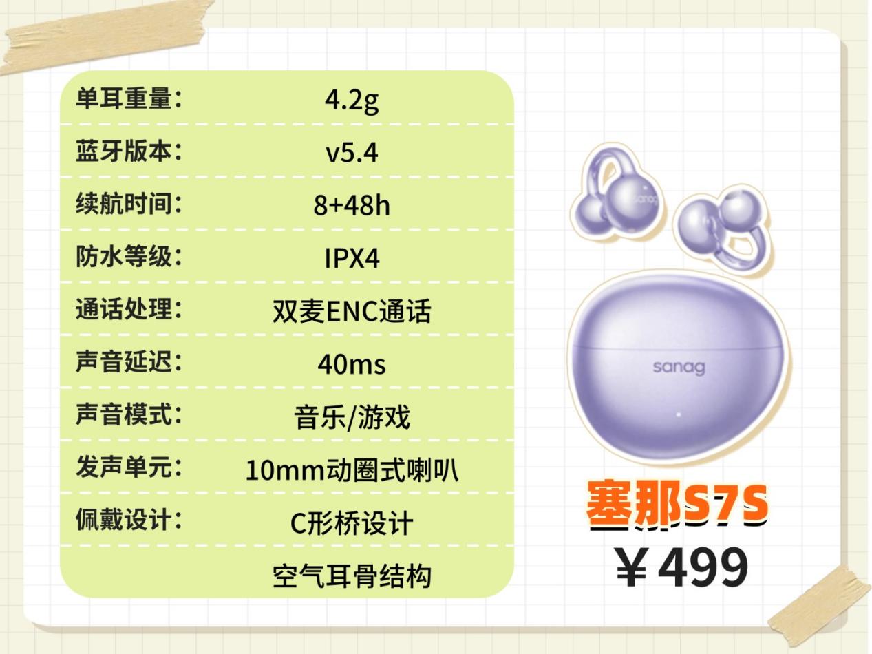 和同价位的机型比起来,这款耳机的音质表现实在没什么亮点。虽说它搭载了自研动圈喇叭来提升声音清晰度,还加了刚塞纳音频增强技术来优化听感,但实际体验下来,整体效果还是没拉开差距,只能算个中规中矩的水平。佩戴这块倒是值得夸夸,它采用的空气耳骨结构设计,能让耳机更贴合耳廓轮廓,再加上机身重量控制得比较轻巧,就算长时间佩戴也不会有不适感。虽然防水等级不算高,但续航很顶,充一次电能稳稳用两天。综合来看,它更偏向一款主打实用的耳机,音质党慎入。