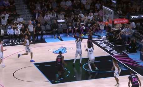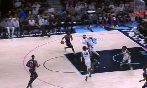 威金斯左路跟进快攻中线位置接队友上球后突破长驱直入,