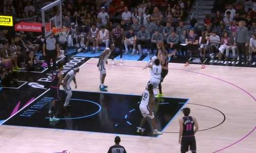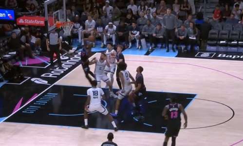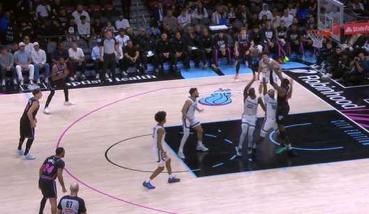 威金斯接球后迎着小皮蓬扑防底角三分空心入网。
