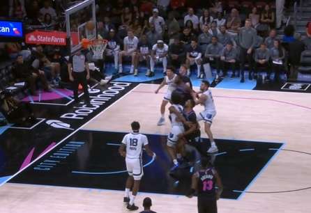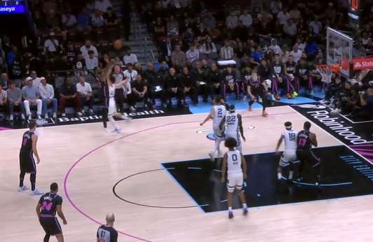 阿德巴约背身吸引小皮蓬沿底线前来夹击,