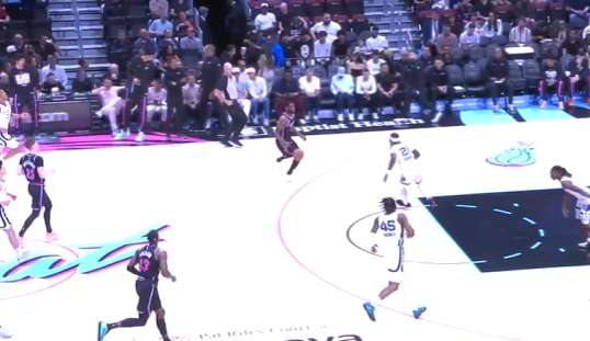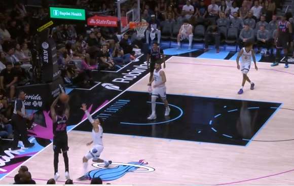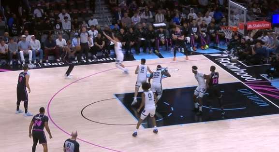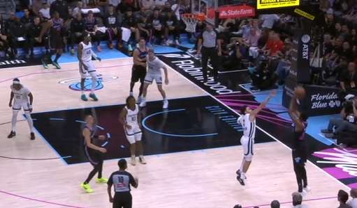 威金斯接球后迎着克莱顿扑防,三分稳稳命中。