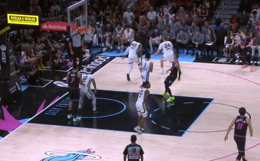 希罗接球突破吸引扑防后立即中转给底角的威金斯,