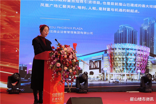 盛典的核心环节,聚焦于眉州·凤凰广场这一城市商业巨舰的试运营亮相。眉山巨隆宝商业管理有限公司商业总监赵银铃登台,向全场揭示了项目的宏伟蓝图与核心价值。