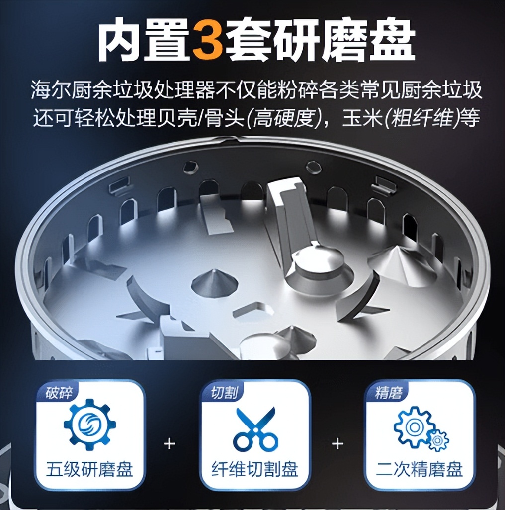 海尔LD680-W3垃圾处理器搭载600W直流电机,转速可达2800转/分钟,能高效粉碎各类厨余垃圾,即使是硬质骨头也能轻松处理。内置五级研磨系统,可将垃圾细致研磨,大幅降低下水管道堵塞风险,使用时无需担心后续清理问题,更显安心。同时配备自动反转和过载保护功能,遇到难粉碎物体时会自动反向运转,既保障设备耐用性,也提升使用安全性。
