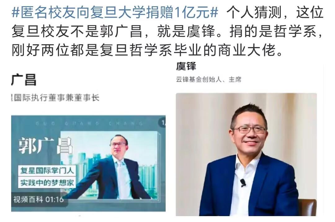 综上所述,这位复旦校友不是复星集团的郭广昌就是云锋基金的虞锋,因为两位都是复旦哲学系毕业的商业大佬。