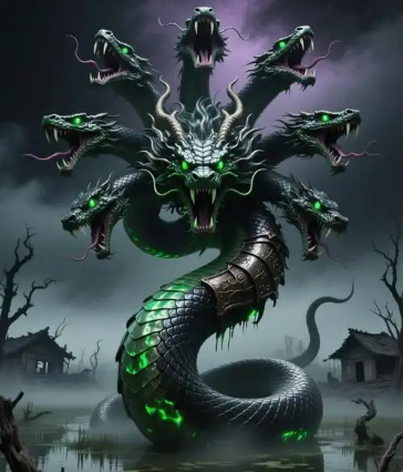 《山海经·海外北经》:“共工之臣曰相柳氏,九首,以食于九山。相柳之所抵,厥为泽溪。禹杀相柳,其血腥,不可以树五谷种。禹厥之,三仞三沮,乃以为众帝之台。在昆仑之北,柔利之东。相柳者,九首人面,蛇身而青。”