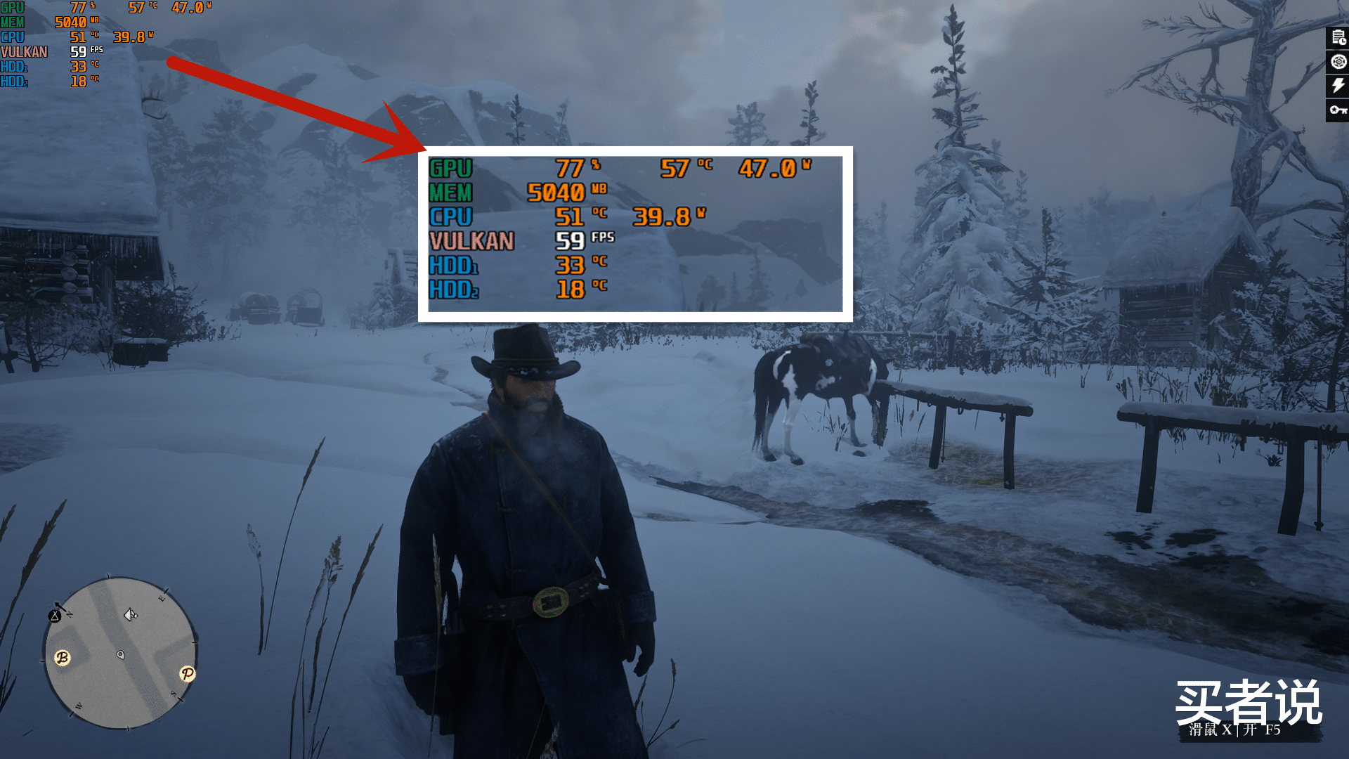 用《荒野大镖客2》进行游戏测试,内存占用为5GB左右。