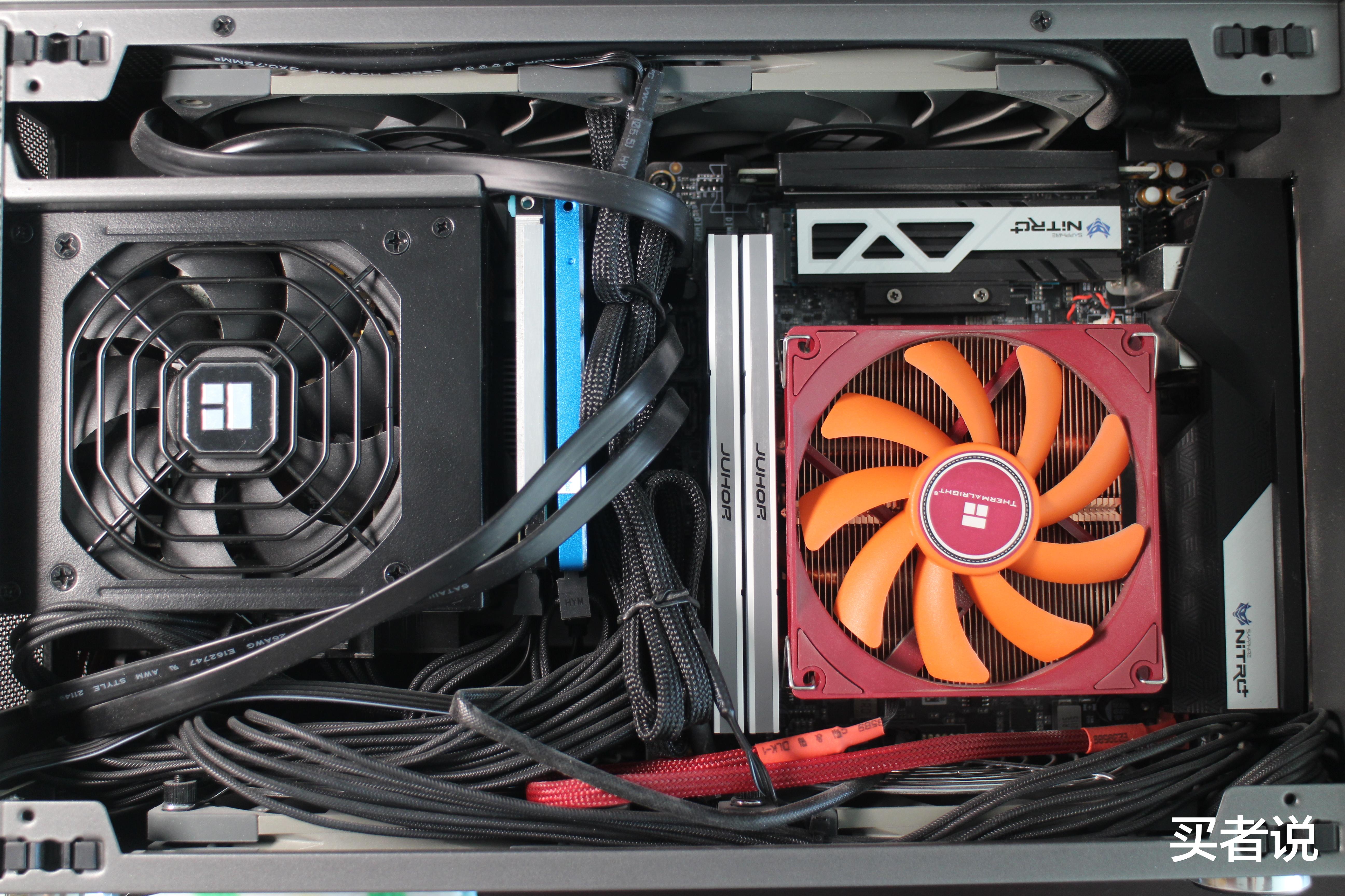 由于我的测试机箱为小尺寸的ITX机箱,如图所示,内存条、紧靠在CPU散热器上。