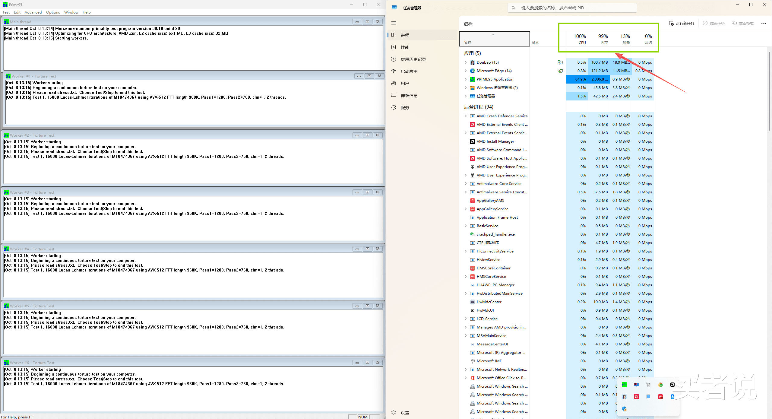 Prime95在Blend模式下,对内存和CPU进行协同压力测试,模拟极端场景。