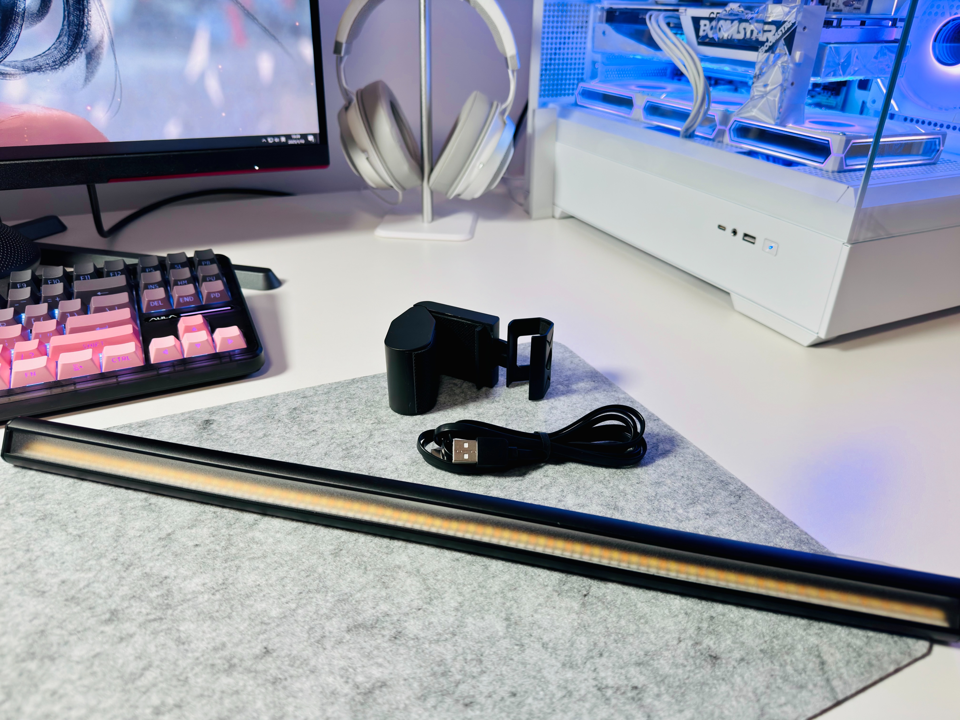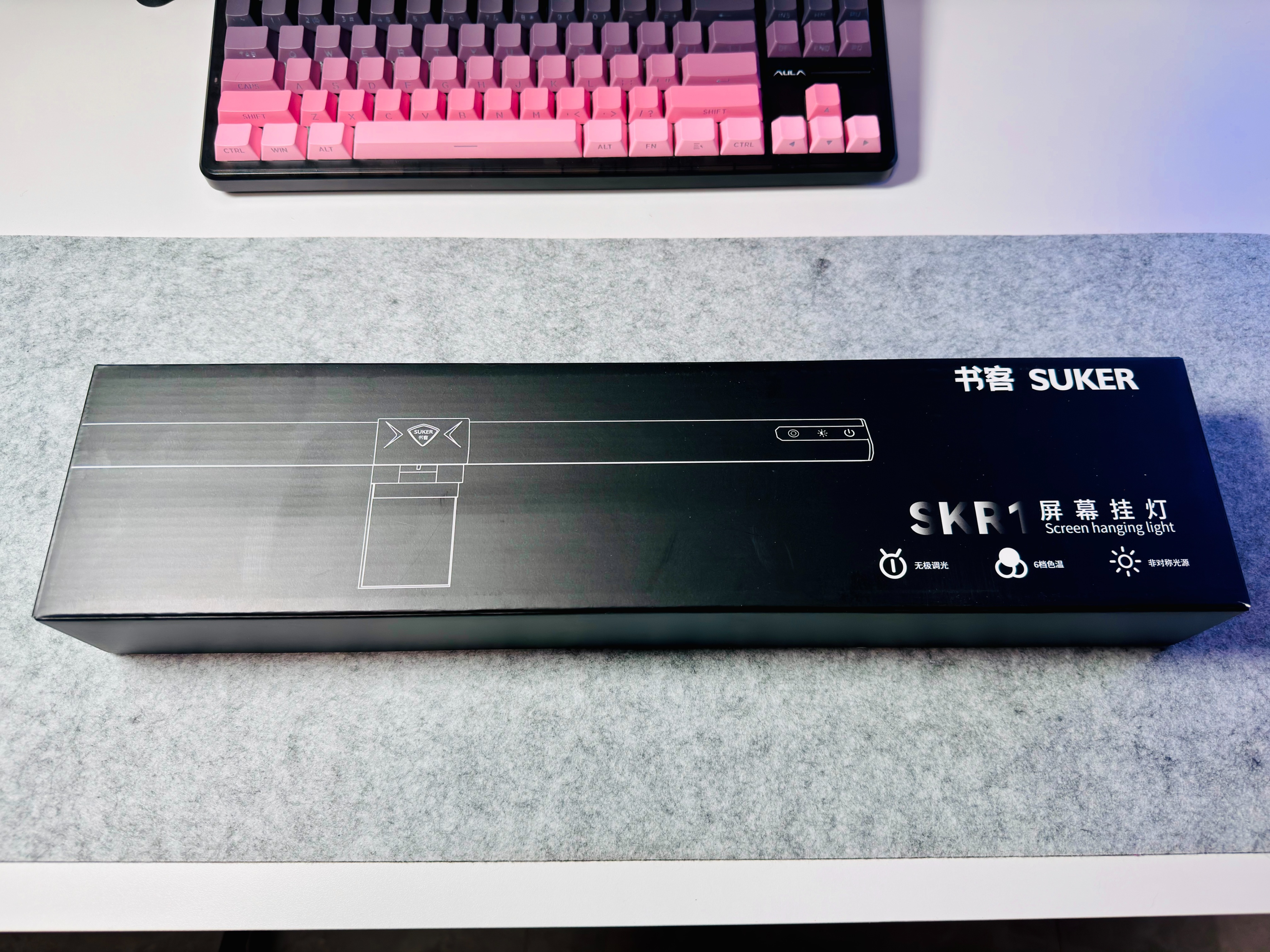 书客Skr1屏幕护眼挂灯从配件方面就很简洁,所以安装起来非常方便,没有过多的步骤,我总结下来就是:一横扣灯体(灯体卡在悬挂部件,注意找准角度一次就好);二放置屏幕上方,使悬挂部分平行挂在屏幕上方;三插线通电即可使用。