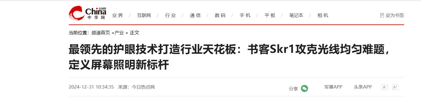 好家伙,原来屏幕护眼灯真不是智商税,之前总看到别人在电脑屏幕上有挂了个灯,我寻思这不是“脱裤子放屁吗?”本来屏幕就够亮了,还弄个灯,费钱还增添光污染。直到我最近看到中华网推的这款书客Skr1屏幕灯后,我才顿然开朗,原来人家是用来护眼,降低屏幕光线对眼部的刺激。比如我国有62.79%的IT从业者每天对着屏幕工作时长超8小时,并且还不算私下娱乐的时间,且有高达93.67%的职场人存在视觉疲劳!