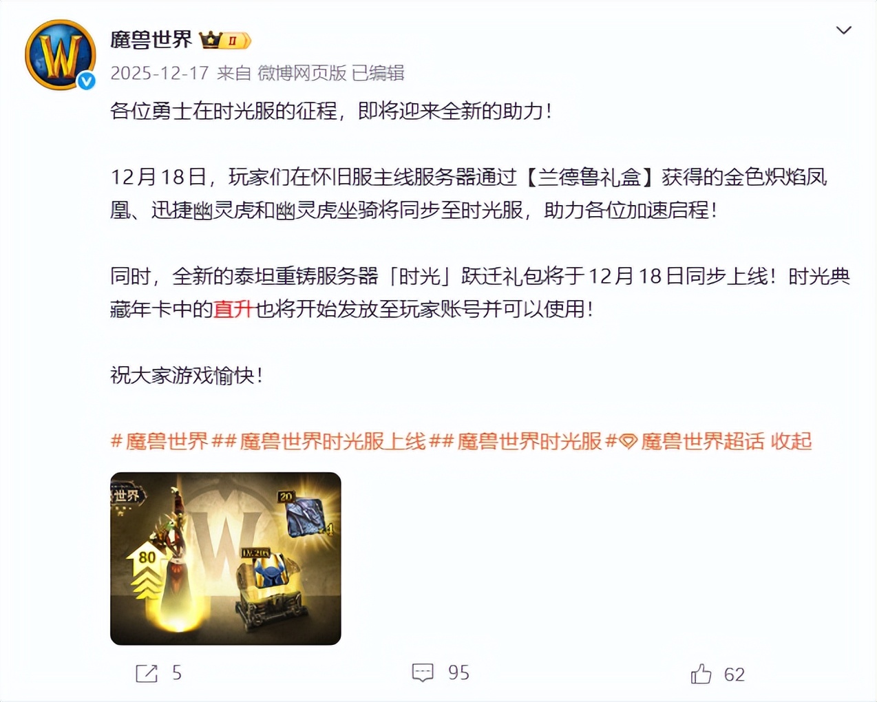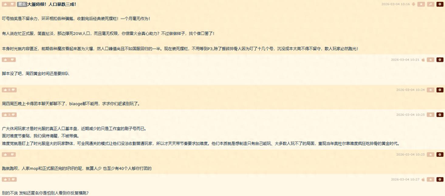 该帖主的第一个观点就是叮号抽奖是不遗余力,环环相扣各种骗氪,以及说官方后续摆烂。其实从这个观点开始就存在了各种各样的错误,甚至农工觉得魔兽世界时光服相对来说比较克制了。第一个就是魔兽世界时光服开服后率先开启的是双倍经验来协助玩家们快速进行升级,因为玩家数量过多,所以时光服不得不开启新一轮的服务器,而新一轮的服务器直接开放了三倍经验协助玩家追赶。