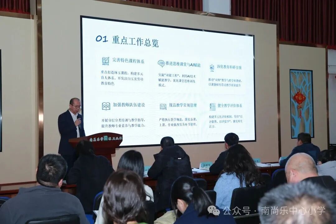 学校整体部署:书记、校长穆金霞解读学校工作计划,紧扣“红匠领航、尚乐育人”理念,明确发展目标与重点任务。