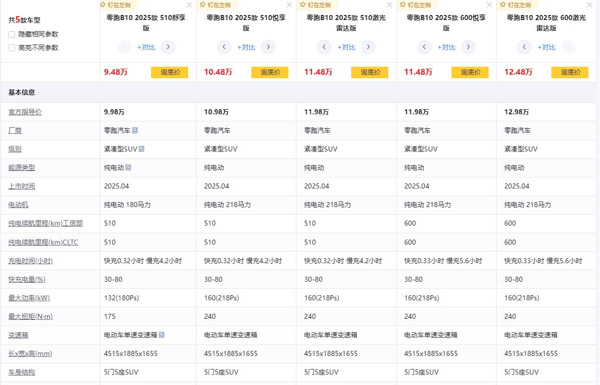 零跑 B10 目前价格下探到9玩出头起,在这个价格区间内,它展现出了强大的竞争力。与同价位的几款热门车相比,优势十分明显。与比亚迪海豚相比,B10 多出了 8295 芯片,车机运行更加流畅,同时还拥有更长的续航和欧盟认证,品质更有保障;与埃安 AION S 相比,B10 在智能座舱流畅度和安全配置上更胜一筹,为驾驶者带来更好的使用体验;与大众 ID.3 相比,B10 价格低 4 万,但在智能化体验方面却实现了反超,性价比极高。(详情请咨询当地经销商)